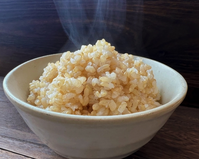 玄米ご飯は、食物繊維が豊富で咀嚼することで満足感を得られるため、食べ過ぎを防ぐ効果があります。
